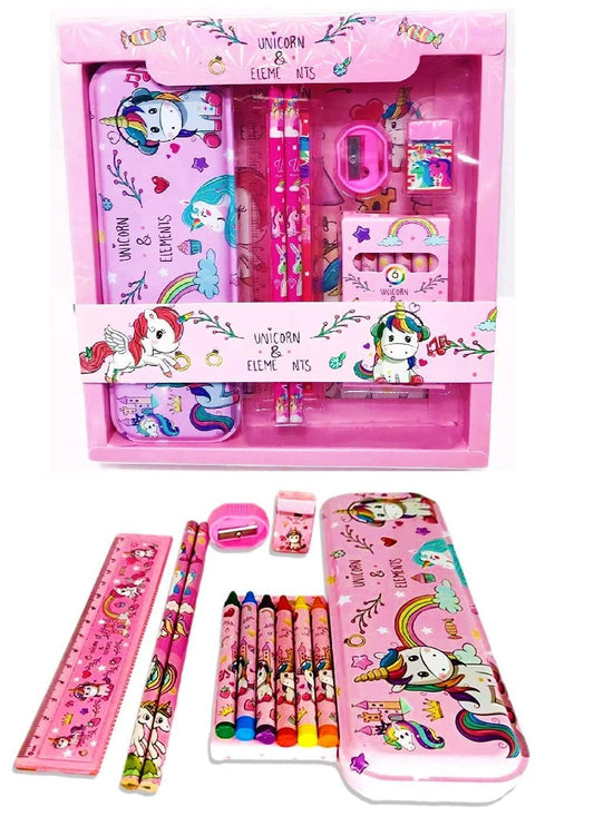 Unicorn Stationery Gift Set | Pencil Box, Pencil, Eraser, Sharpener, and Crayons