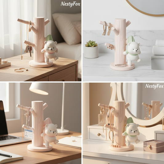 Cute White Bear and Tree Trunk Jewelry, Key, Ring Holder Stand