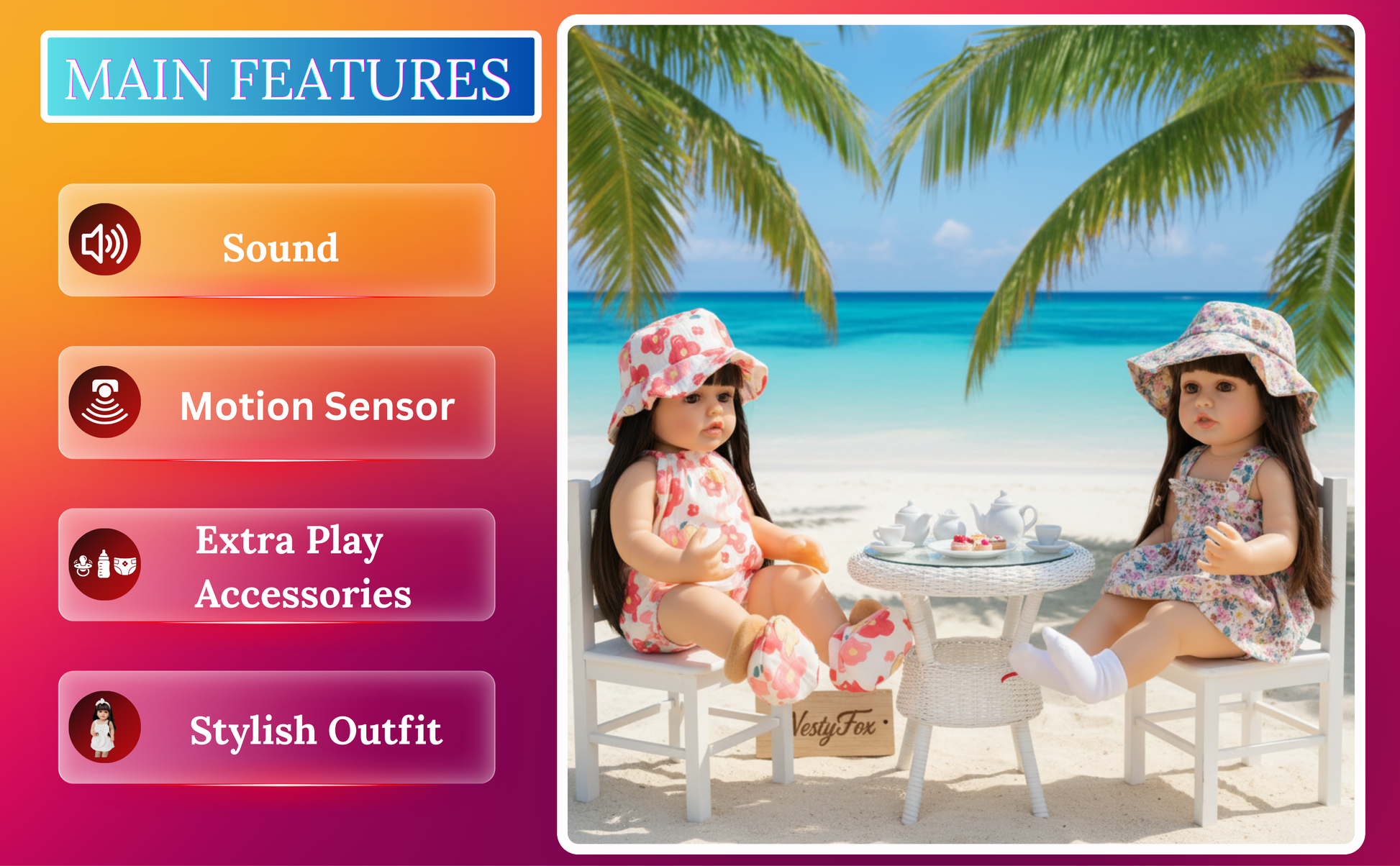 📏 Main Doll: 55cm × 22cm